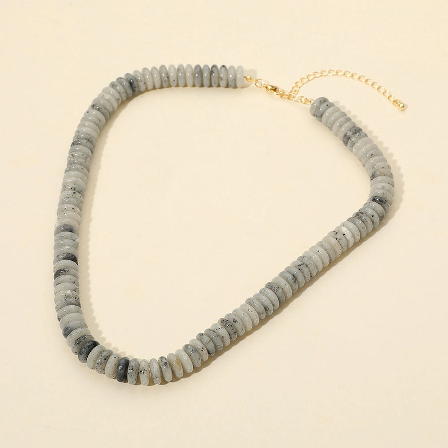 Necklace Size : 16" + 3" L Decor Size : 0.4" L This necklace features smooth, rounded disc beads with a subtly speckled finish for an earthy, organic aesthetic. Finished with an adjustable clasp for a perfect fit, it’s ideal for everyday wear or layering with other pieces for a curated, effortless look. Lightweight.